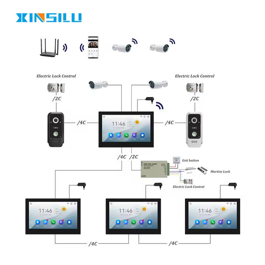 Visiophone HD 07 Pouces 04 poste avec 04 écran tactile, vision nocturne, NFC et contrôle WiFi NOIR
